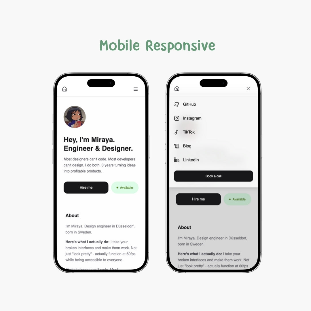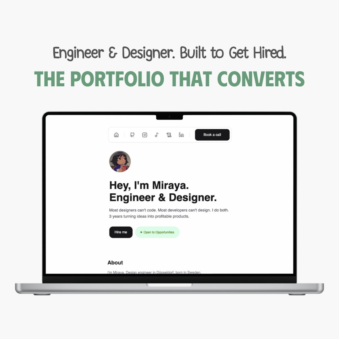 A premium portfolio template used by Miraya Tech to land freelance gigs, get job interviews at top startups, and build an unforgettable online presence that actually converts.